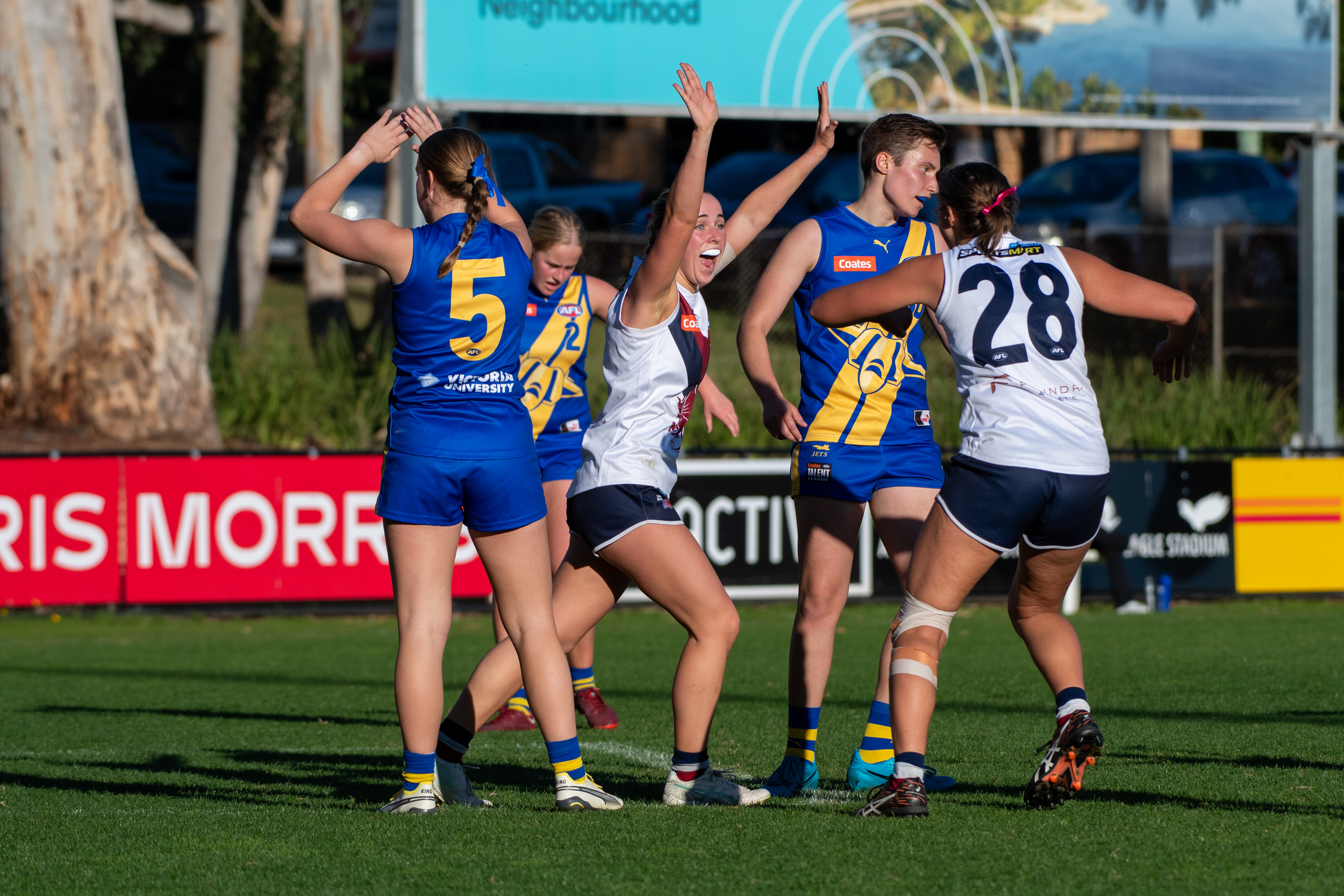 Looking to bounce back after a loss last round, the Under 18 Girls team headed north to Werribee to take on the Western Jets for the second time this season. A couple of new faces in the team for this game, with both PJ Martin and Jazzy Reeves getting their opportunity. Edie McLachlan had replaced Margot Whitney in the ruck, with Gabrielle Trajer starting in the midfield alongside Sophie McKay and Daisy Flockart.